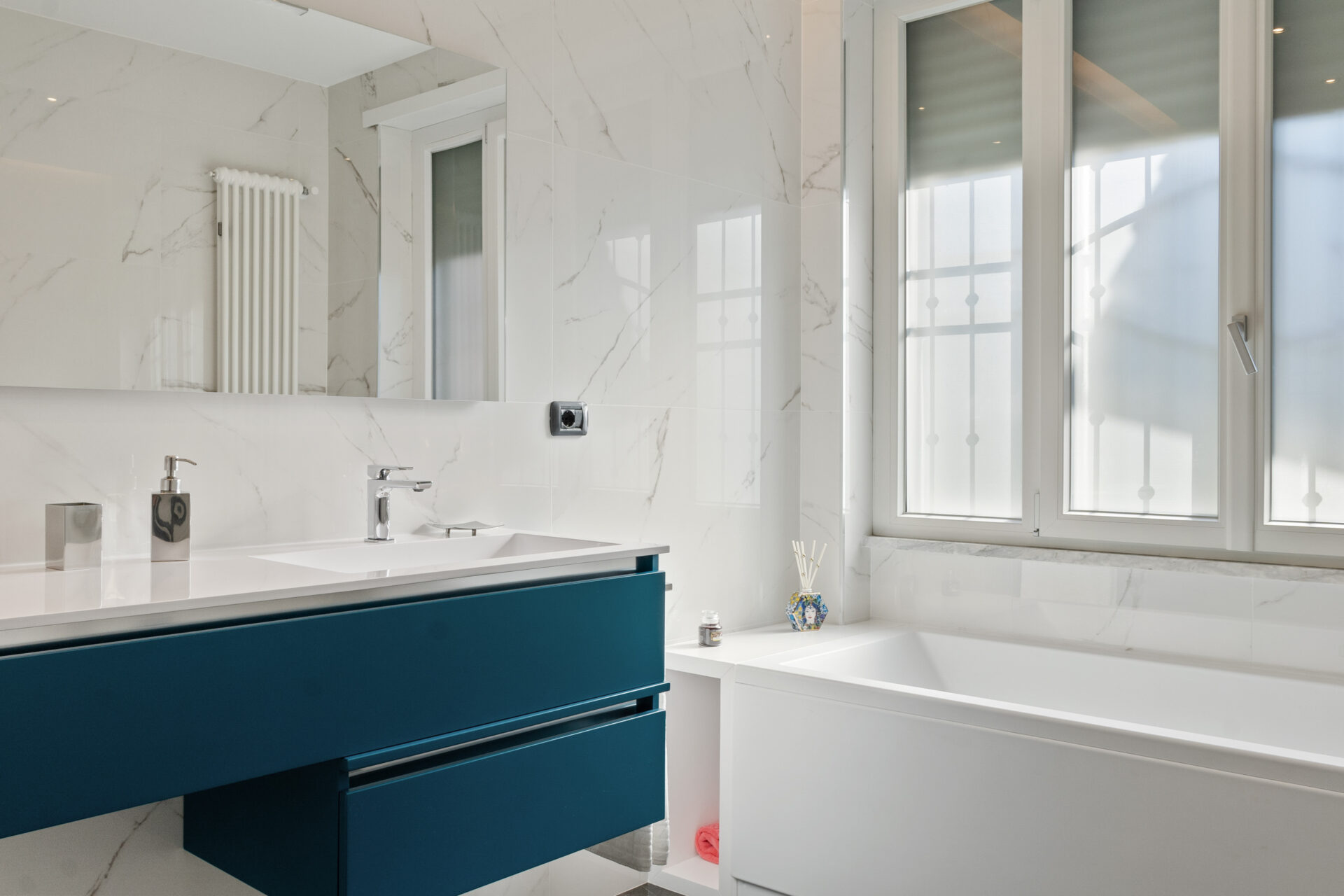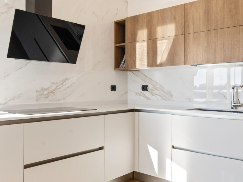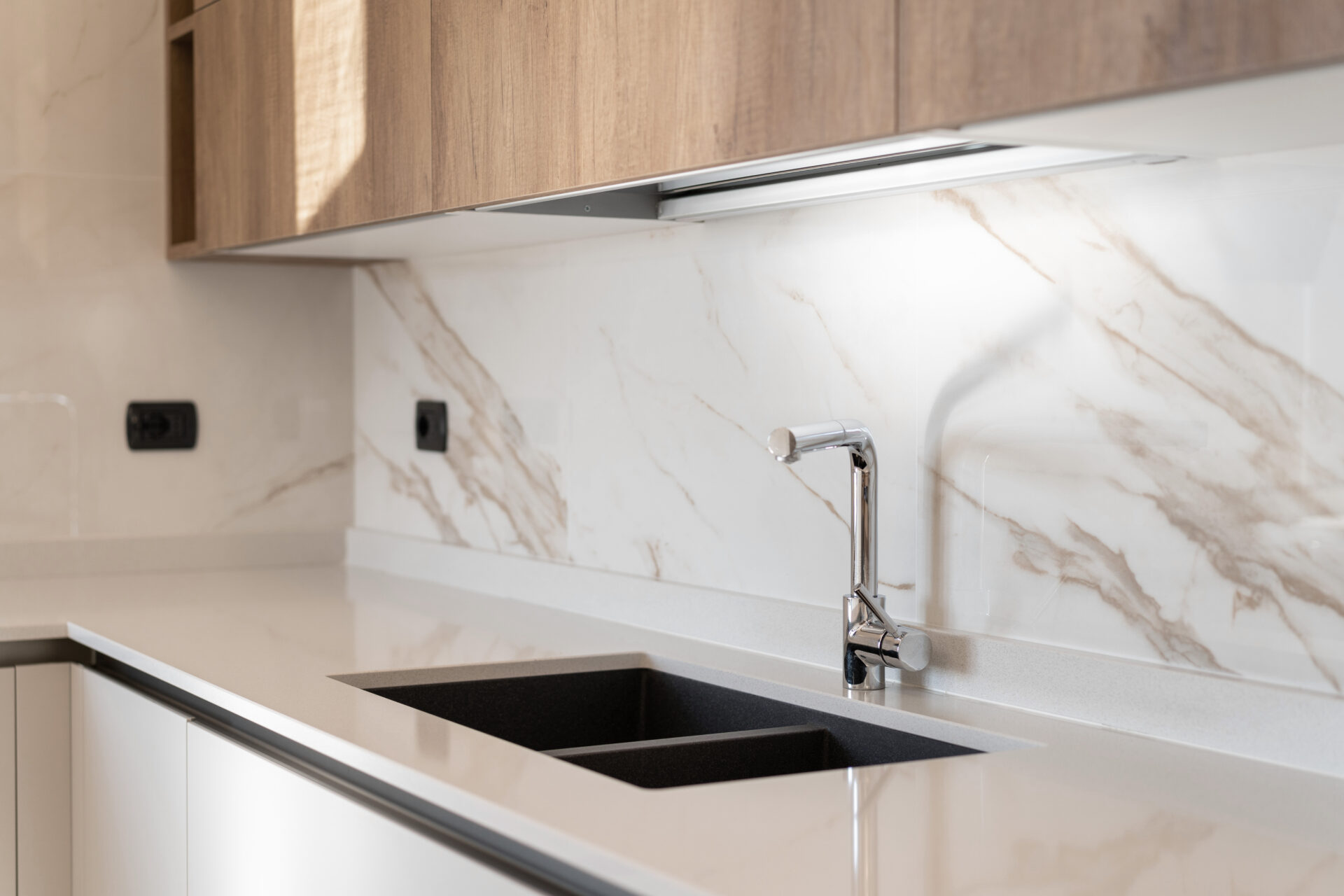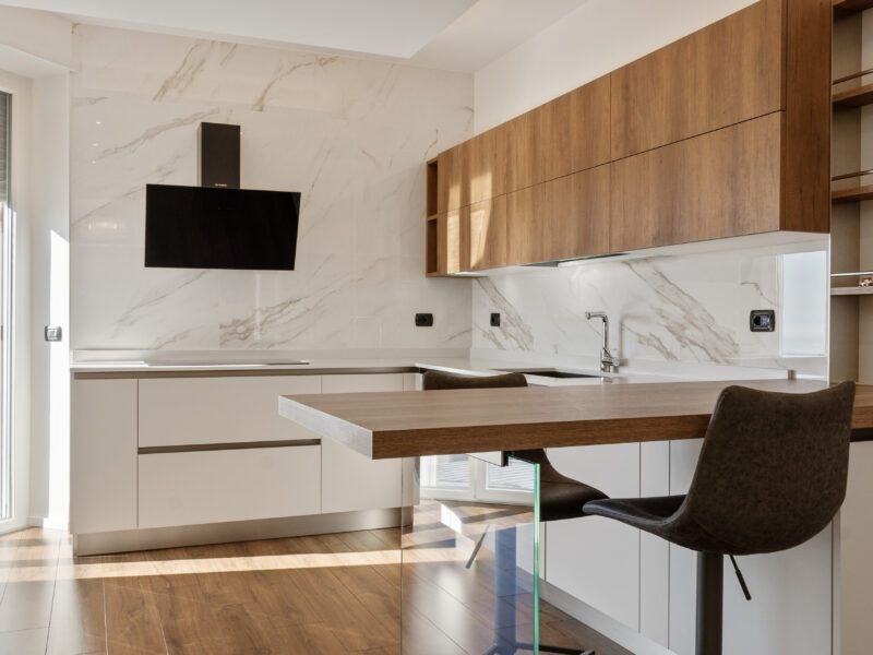 Il concept generale si fonda su una continuità materica misurata: marmo, legno e tessuti neutri compongono il fil rouge dell’abitazione, mentre l’illuminazione—naturale e artificiale—accentua texture, superfici e comfort percettivo.