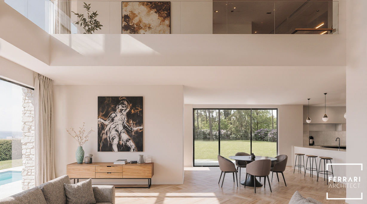 Il progetto interpreta un’abitazione contemporanea ispirata allo stile mediterraneo, dove materiali naturali, linee essenziali e una palette chiara creano ambienti eleganti e accoglienti. Pietra, legno e grandi superfici vetrate definiscono una continuità fluida tra interior e paesaggio, valorizzando luminosità e sobrietà compositiva.